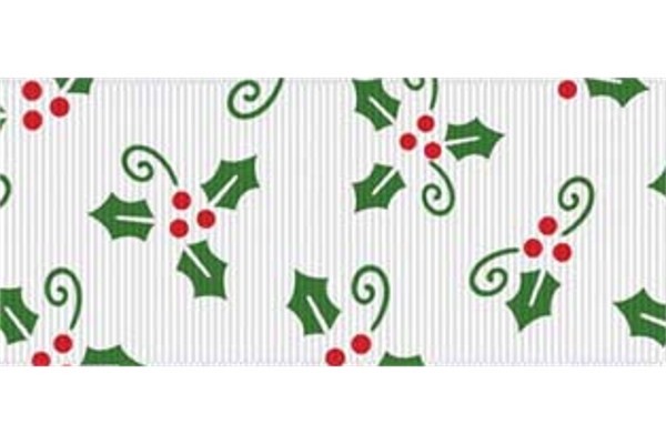 5 yards 1.5" Christmas Holly Print Grosgrain Ribbon