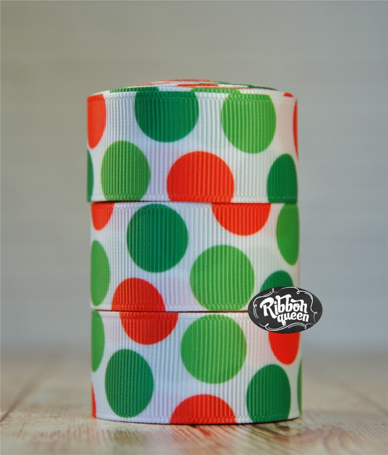 5 yards 7/8" Christmas Funky Dot Print Grosgrain Ribbon