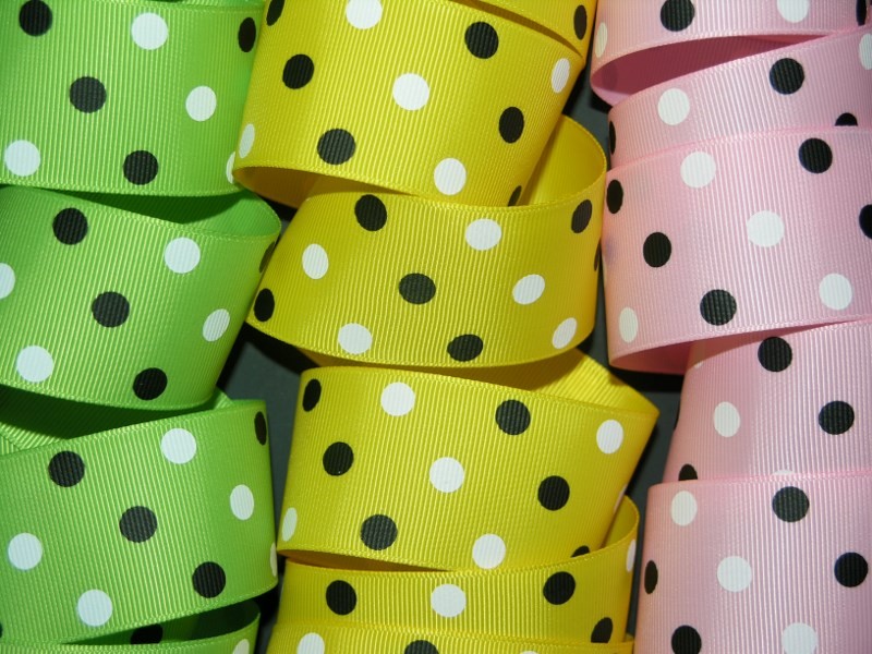 Black and White dots on your choice of signature grosgrain ribbon: Pink, Yellow, or New Apple.