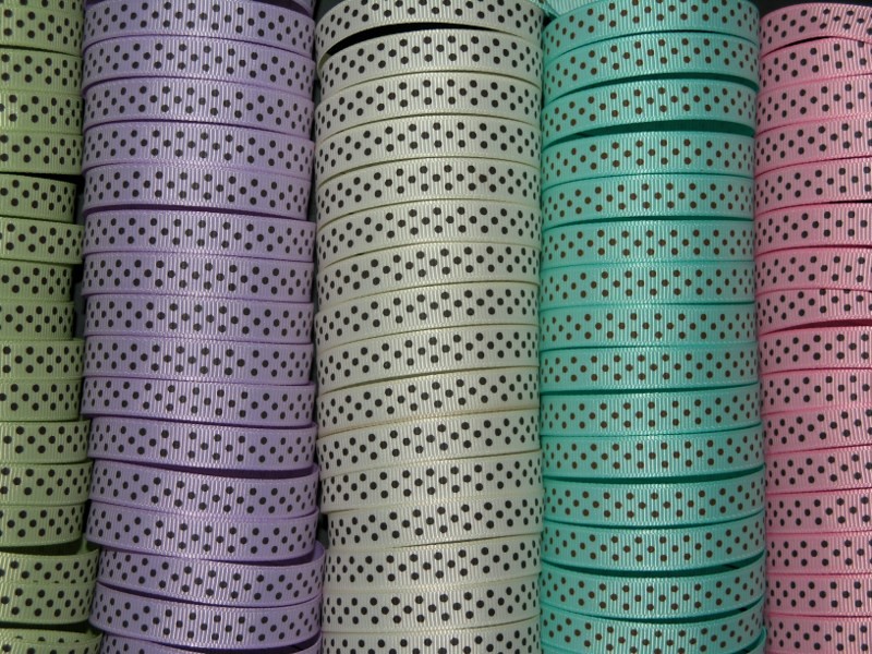 Brown Tiny Swiss Dots printed on Solid Grosgrain Ribbon. Many colors to choose from.