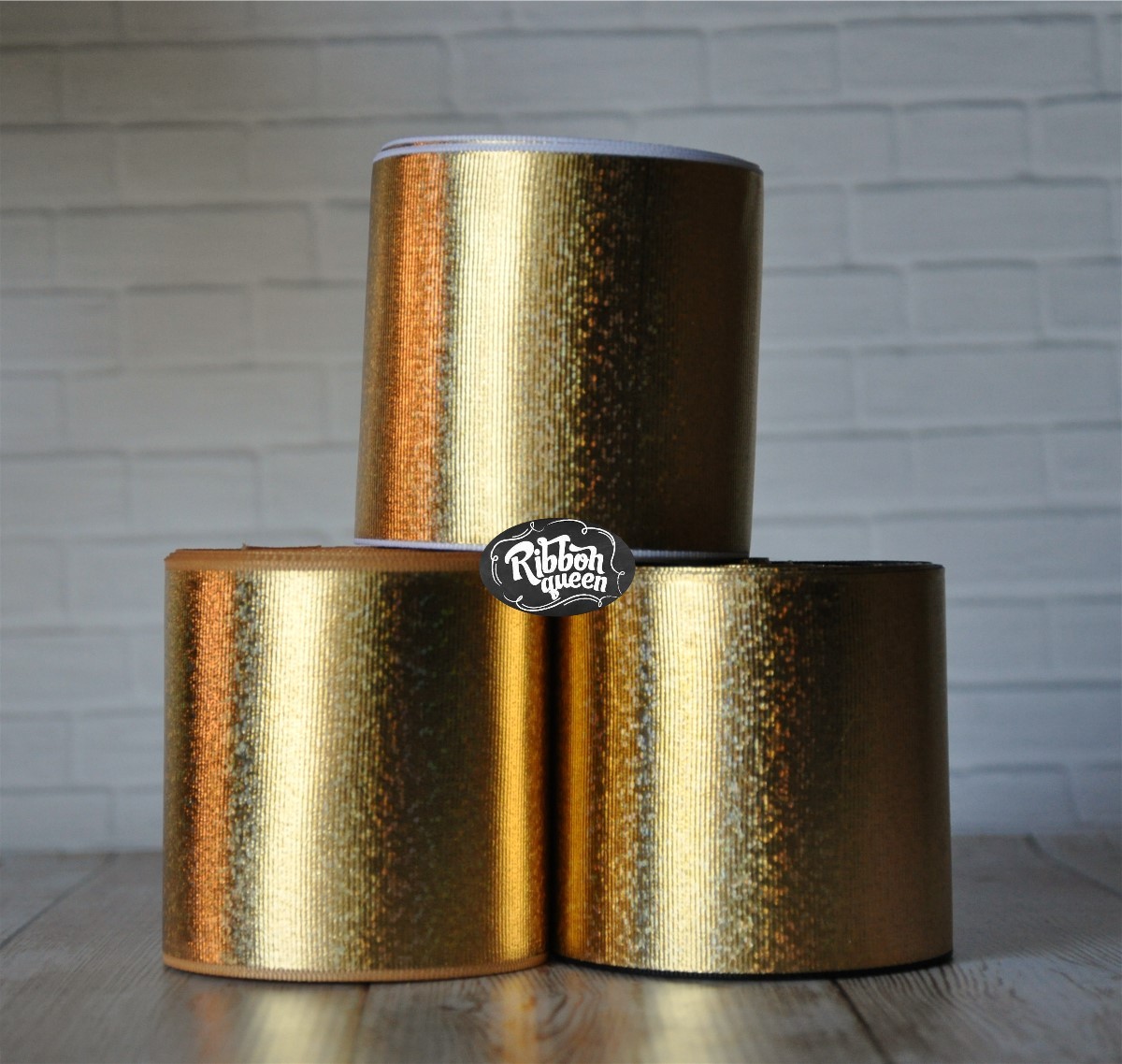 5 yards 3" Gold Hologram Foil Print Grosgrain Ribbon Holographic