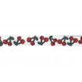 Cherries are printed on one side. Hand washing is recommended to keep prints bright. Cherries may show wear from heavy handling as any print would. 100% Polyester, low iron.