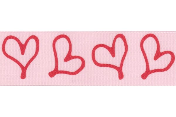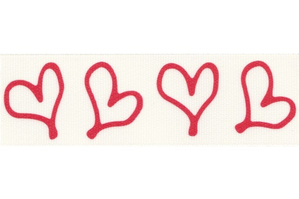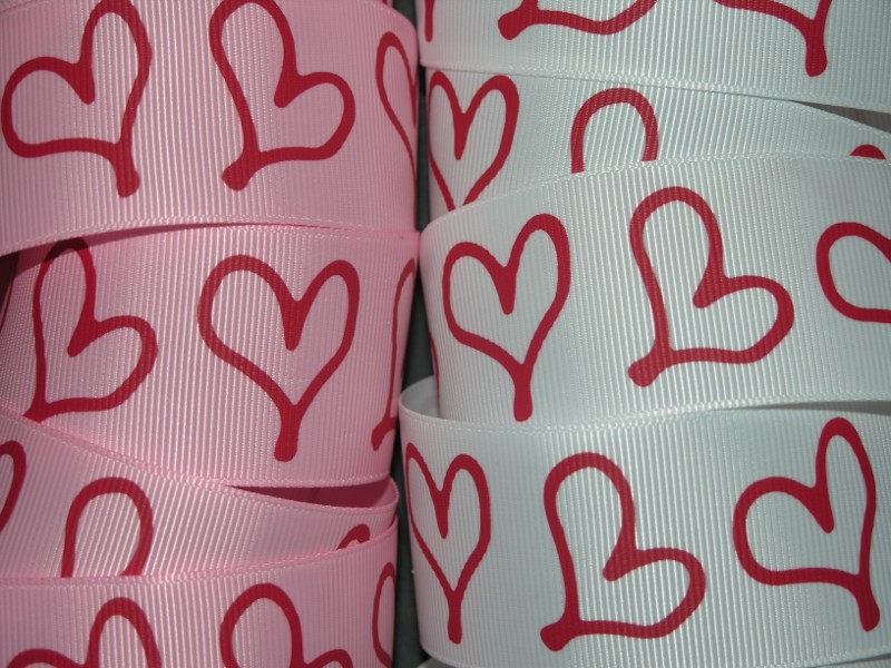 5 yards 1.5" Drawn Heart Print Grosgrain Ribbon