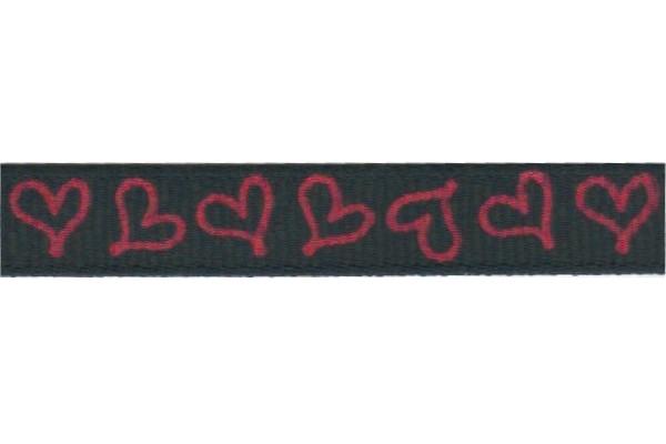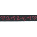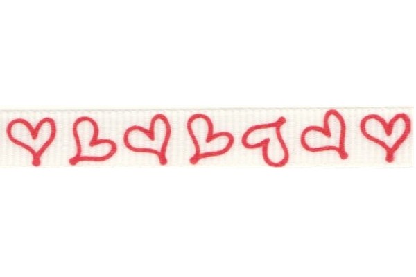 5 yards 3/8" Drawn Heart Print Grosgrain Ribbon
