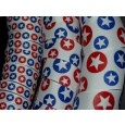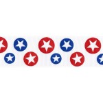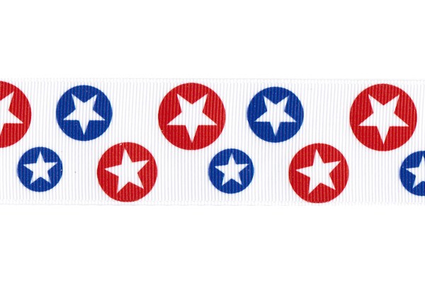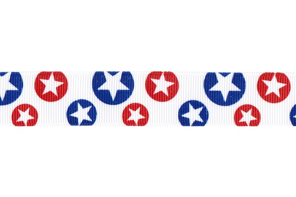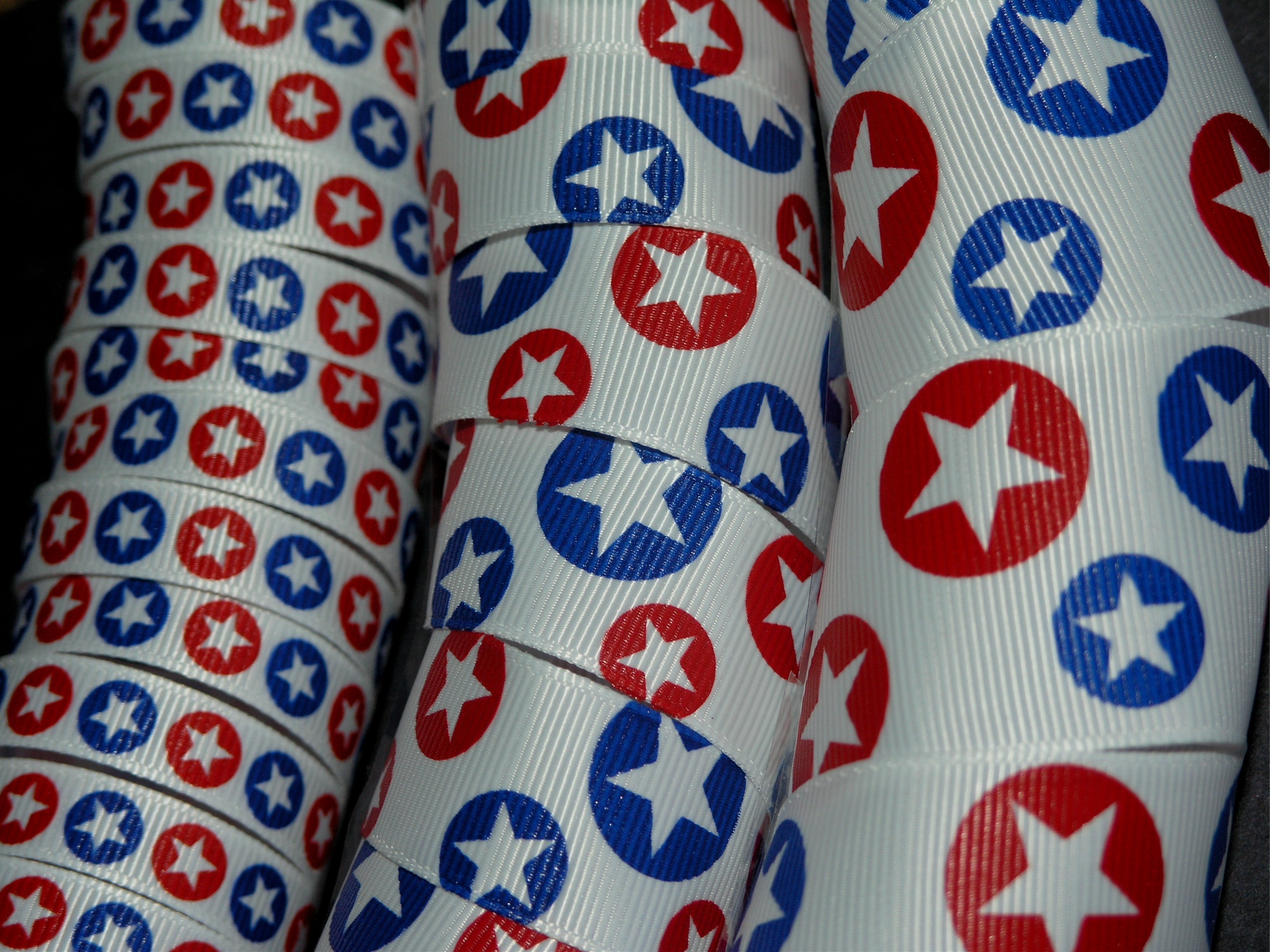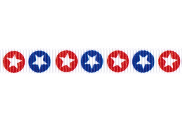 Star Dots are printed on one side and reverse to corresponding solid ribbon. Hand washing is recommended to keep them bright, low iron on opposite side. 100% Polyester.