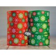 1" Snowflake Dots in New Apple Green, Red, and White on your choice of Red or Emerald Green background ribbon. Great for Christmas crafts!