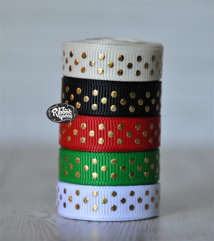 5 yards 3/8" Christmas Gold Foil Tiny Swiss Dot Grosgrain Ribbon