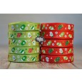 3/8" Winter Mittens in Emerald Green, Red, and White on your choice of Red or New Apple background ribbon. Great for Christmas crafts!