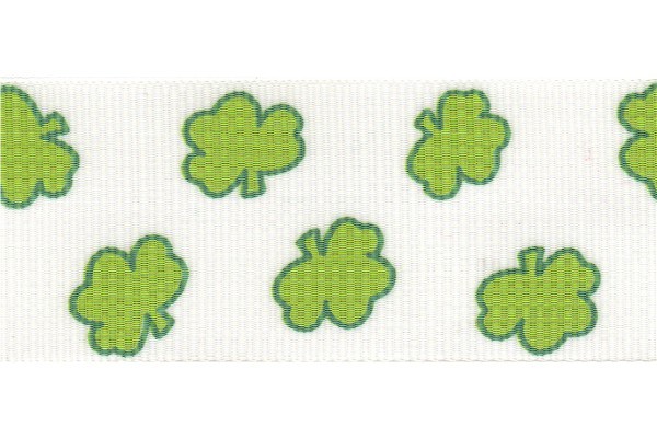 5 yards 1.5" Fluffy Shamrock Print Grosgrain Ribbon