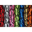 Zebra Stripes are printed on one side and reverse to corresponding solid ribbon. Hand washing is recommended to keep them bright, low iron on opposite side. Zebra Stripes may show wear from heavy handling as any print would. 100% Polyester, machine wash, low iron on opposite side.