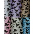 Horses are printed on one side. Hand washing is recommended to keep them bright. Horses may show wear from heavy handling as any print would. 100% Polyester, low iron.