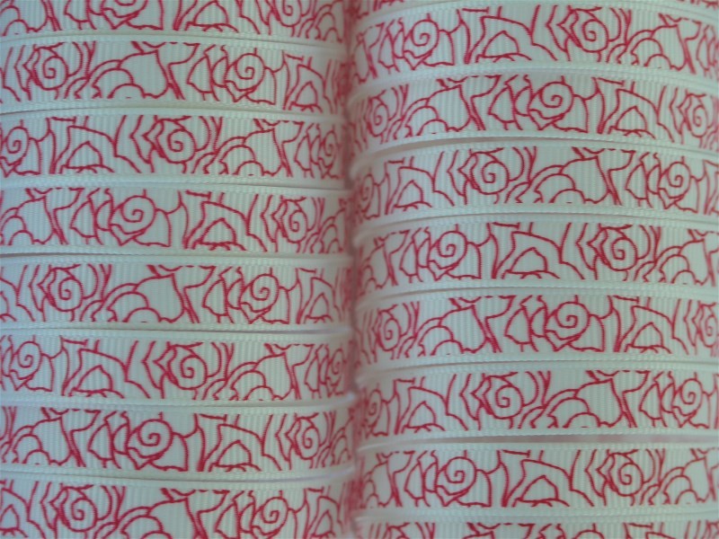 3/8" Scribble Rose Print Grosgrain Ribbon
