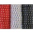 Wheels are printed on one side and reverse to corresponding solid ribbon. Hand washing is recommended to keep them bright, low iron on opposite side. They may show wear from heavy handling as any print would. 100% Polyester.