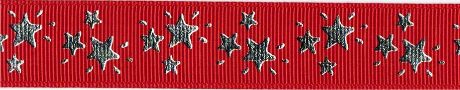 5 yards 7/8" Silver Foil Sparkle Stars Print Grosgrain Ribbon