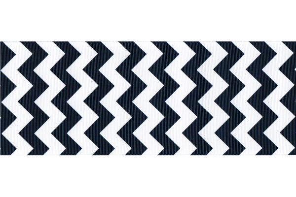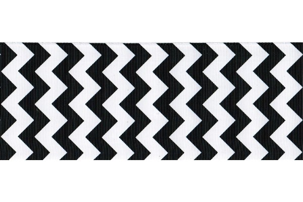 One Yard 3" White Ink Chevron Print Grosgrain Ribbon