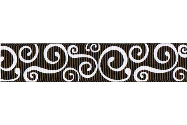 5 yards 7/8" White Scroll Print Grosgrain Ribbon